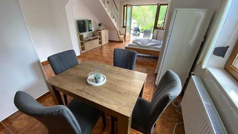 Das Green Garden Apartman verfügt über einen saisonalen Außenpool, in dem Sie sich an warmen Tagen erfrischen können. Der Garten und die Terrasse laden zum Entspannen ein und bieten Ihnen die Möglichkeit, die grüne Umgebung zu genießen. In der Umgebung gibt es auch zahlreiche Freizeitaktivitäten wie Wassersport, Radfahren und Wandern.