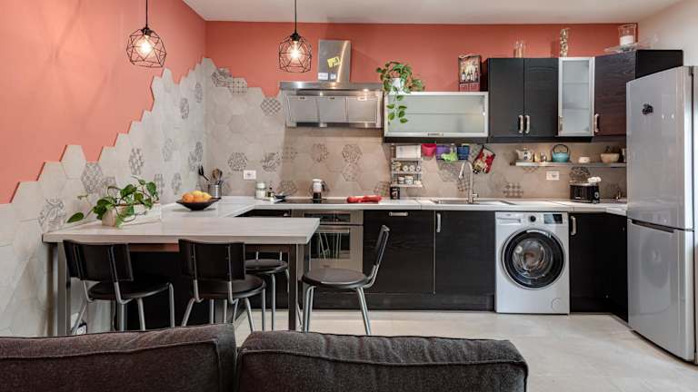 Die Ferienwohnung ist ausgestattet mit einem Schlafzimmer, einer Küche mit Kühlschrank und Geschirrspüler, einem Badezimmer mit Dusche sowie kostenlosen Pflegeprodukten und einer Waschmaschine. Handtücher und Bettwäsche werden ebenfalls bereitgestellt.
