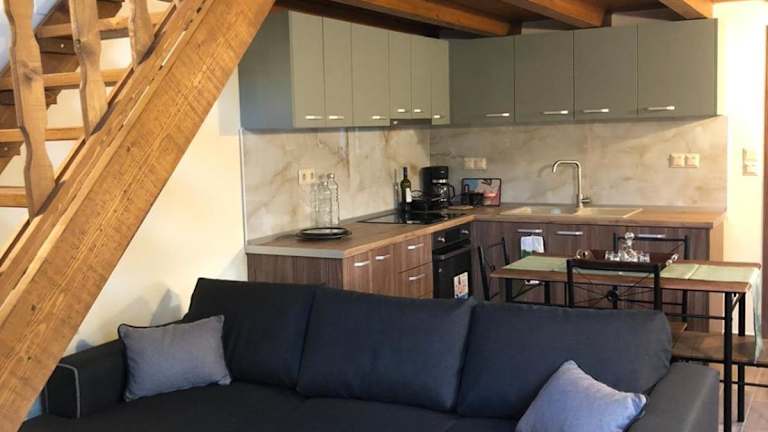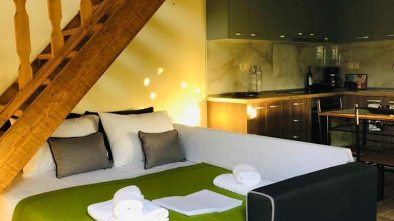 Das Ferienhaus besteht aus 1 Schlafzimmer, einem Wohnzimmer und einer voll ausgestatteten Küche mit Kühlschrank und Kaffeemaschine. Ein Badezimmer mit Dusche und Whirlpool ergänzt die Unterkunft. In Green Olive Studios sind Handtücher und Bettwäsche verfügbar. Es gibt zudem eine Sonnenterrasse sowie Gartenmöbel.