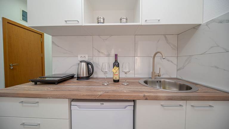 Die Unterkunft liegt ungefähr 1 km vom Strand Crvena Plaža entfernt und 700 m vom Strand Plaza Zukotrlica. Zusätzlich ist der Strand Črvanj 1,2 km und der Strand Zlatna Obala 2,1 km von der Unterkunft entfernt. Der nächstgelegene Flughafen Podgorica ist in 40 km Entfernung.