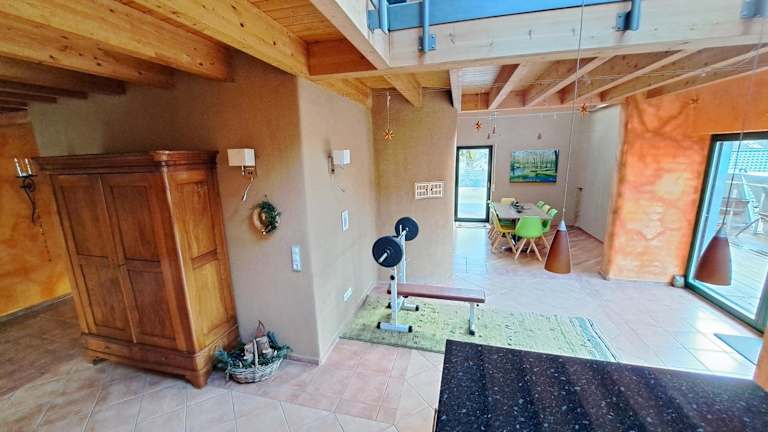 Die gut ausgestattete Küche beinhaltet einen Kühlschrank und einen Geschirrspüler, sodass Gäste die Möglichkeit haben, eigene Mahlzeiten zuzubereiten. Grillmöglichkeiten im Garten stehen ebenfalls zur Verfügung, um gemütliche Grillabende zu verbringen.