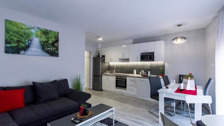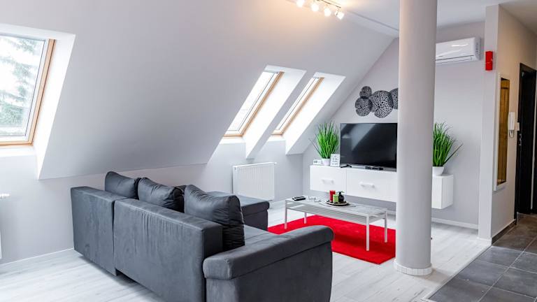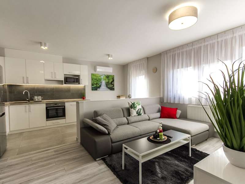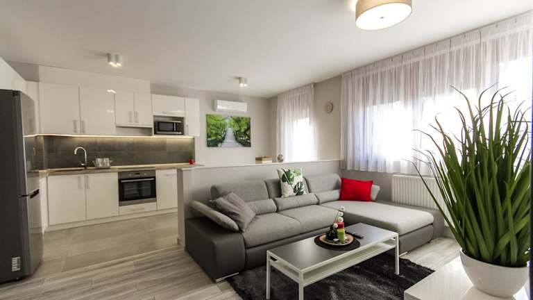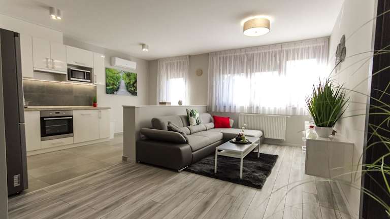 Grey Suites Pécs bietet heimelige Wohneinheiten mit kostenlosem Wifi, Klimaanlage, einem Garten und einer Terrasse. Die Unterkunft ist modern eingerichtet und bietet eine einladende Atmosphäre für Gäste.
