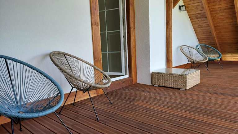 Das Ferienhaus bietet Platz für bis zu 3 Schlafzimmer und ein Wohnzimmer. Zur Ausstattung gehören ein Flachbild-TV und eine gut ausgestattete Küche mit Kühlschrank und Geschirrspüler. Es gibt 2 Badezimmer mit einer Badewanne. Handtücher und Bettwäsche werden bereitgestellt.
