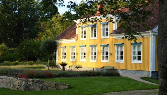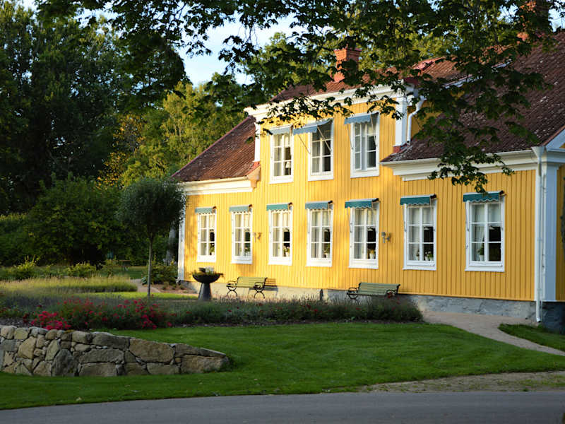 Bleiben Sie in Grimsnäs Herrgård Das beste B & B in Schweden 2015 - laut Swedish Welcome Ein ausgezeichneter Ort zum Verweilen und ein im Sommer geöffnetes Bio-Restaurant Das Herrenhaus ist umgeben von einem schönen Eichenwald im Herzen des Königreichs Kristall und der Bezirk, aus dem unzählige Auswanderer nach Amerika abreisten Grimsnäs liegt in landschaftlich reizvoller Umgebung und weit entfernt von lauten Städten. Genießen Sie die Natur und singende Vögel. Das Hauptgebäude wurde 1850 erbaut, der Hof stammt jedoch aus der Mitte des 15. Jahrhunderts Der gesamte Hof ist biologisch und wir servieren Bio-Lebensmittel