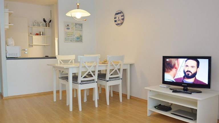 Die Unterkunft verfügt über zwei Schlafzimmer, ein Badezimmer mit Dusche, sowie eine gut ausgestattete Küche mit Kühlschrank und Mikrowelle. Ein Flachbild-TV mit Satellitenkanälen ist ebenfalls vorhanden. Die Wohnung ist für Nichtraucher und bietet Familienzimmer.
