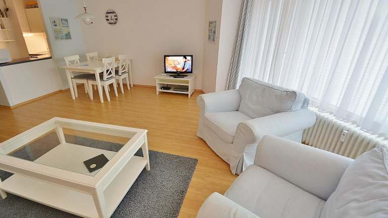 Die Ferienwohnung Grömitz-Center Whg 206 bietet einen Balkon und ist mit modernen Annehmlichkeiten ausgestattet. Besondere Hinweise beinhalten, dass weder Junggesellen- noch Junggesellinnenabschiede gestattet sind und eine Zahlung per Überweisung vor der Anreise erforderlich ist.