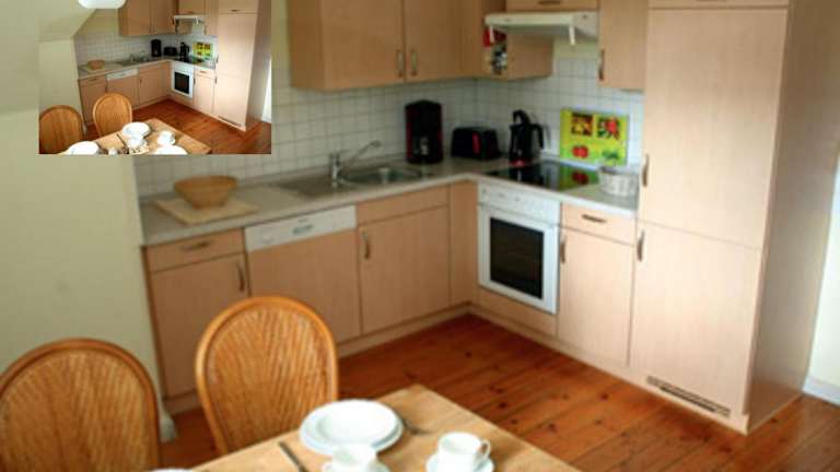 Die Ferienwohnung ist mit zwei Schlafzimmern, einer Küche (ausgestattet mit Kühlschrank und Geschirrspüler), einem Flachbild-TV, einem Sitzbereich sowie einem Badezimmer mit Dusche eingerichtet. Ein Balkon und eine Terrasse ermöglichen einen schönen Ausblick.