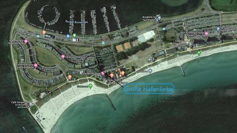 Das Hotel befindet sich in Fehmarn, nur 100 m vom Südstrand Burgtiefe entfernt. Die Umgebung bietet Möglichkeiten zum Wandern und Velofahren.