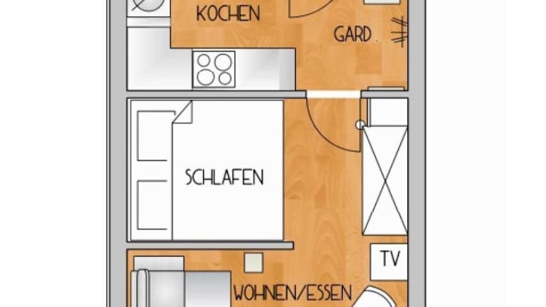 Die Ferienwohnung verfügt über 1 Schlafzimmer, einen Flachbild-TV mit Satellitenkanälen, eine gut ausgestattete Küche mit Kühlschrank und Geschirrspüler sowie 1 Badezimmer mit Dusche. Handtücher und Bettwäsche sind gegen Aufpreis erhältlich.