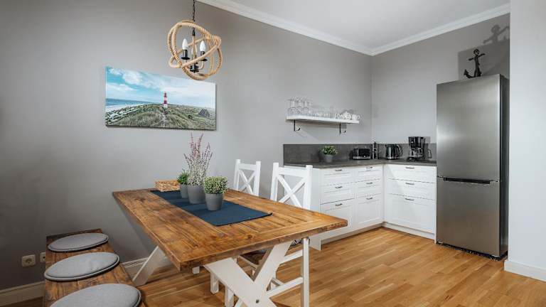 Die Unterkunft Grosse Koje mit Terrasse bietet eine einladende Ferienwohnung mit Grillmöglichkeiten. Sie verfügt über einen Balkon und einen Gartenblick. Die Wohnung enthält zwei Schlafzimmer, ein Wohnzimmer mit einem Satelliten-Flachbild-TV, eine gut ausgestattete Küche sowie ein Badezimmer mit Dusche und Badewanne. Zu den Annehmlichkeiten gehören auch Handtücher und Bettwäsche. Die Unterkunft ist für ein angenehmes Ambiente ausgestattet, sodass sich Gäste wohlfühlen können.