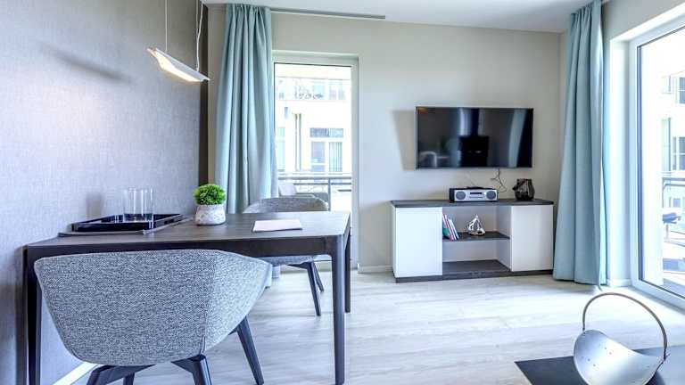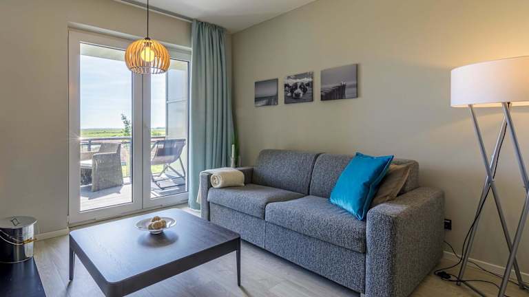 Die Große Strandmuschel ist eine Ferienwohnung mit zwei Schlafzimmern und einem Badezimmer, die sowohl durch eine moderne Ausstattung als auch durch einen Balkon mit Seeblick überzeugt. In der Unterkunft sind verschiedene Annehmlichkeiten wie kostenloses WLAN, eine voll ausgestattete Küche und TV vorhanden. Das Mindestalter für den Check-in beträgt 18 Jahre, und Haustiere sind gestattet.