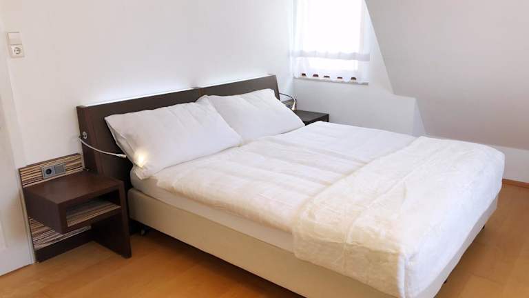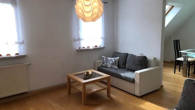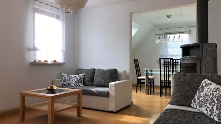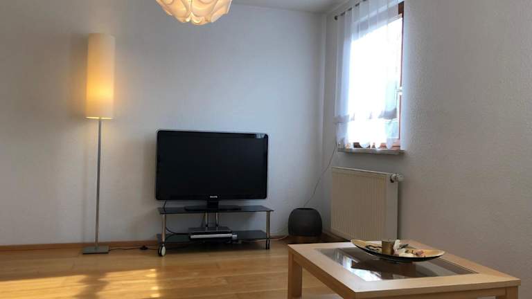 Die Ferienwohnung "Grosse Wohnung mit 2 Schlafzimmern" bietet gemütliche Übernachtungsmöglichkeiten mit kostenlosem Wifi und einer Terrasse mit Gartenblick. Die Unterkunft wird von einem privaten Gastgeber geführt und es sind keine Feiern oder ähnliche Veranstaltungen gestattet.
