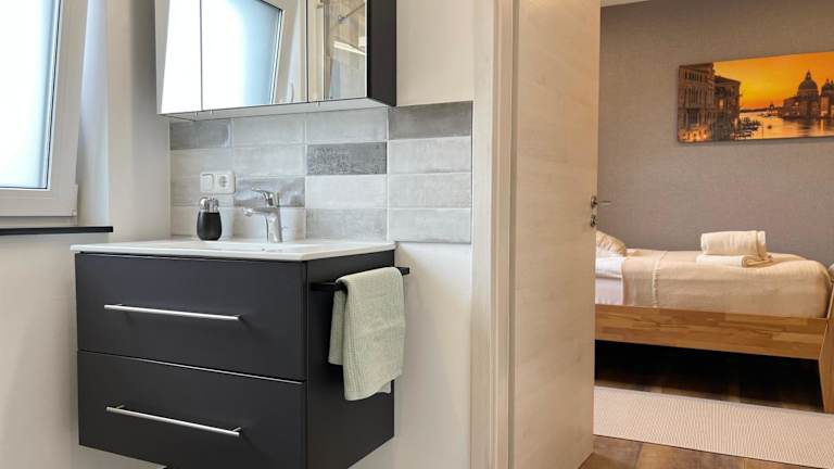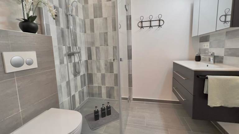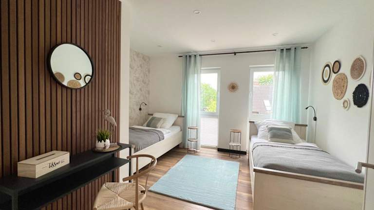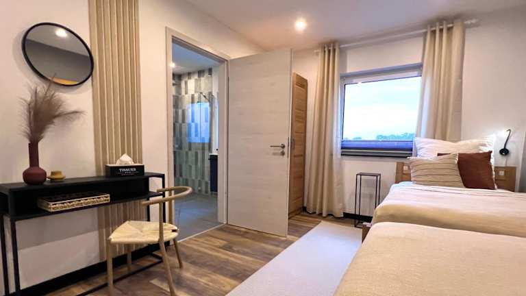 Die Ferienwohnung umfasst 3 heimelige Schlafzimmer sowie eine voll ausgestattete Küche mit Kühlschrank und Geschirrspüler. Ein Flachbild-TV und ein komfortabler Sitzbereich sind ebenfalls vorhanden. Zudem sind 3 Badezimmer mit Dusche vorhanden. Handtücher und Bettwäsche werden bereitgestellt, und die Zimmer sind schallisoliert, um einen ruhigen Aufenthalt zu gewährleisten.