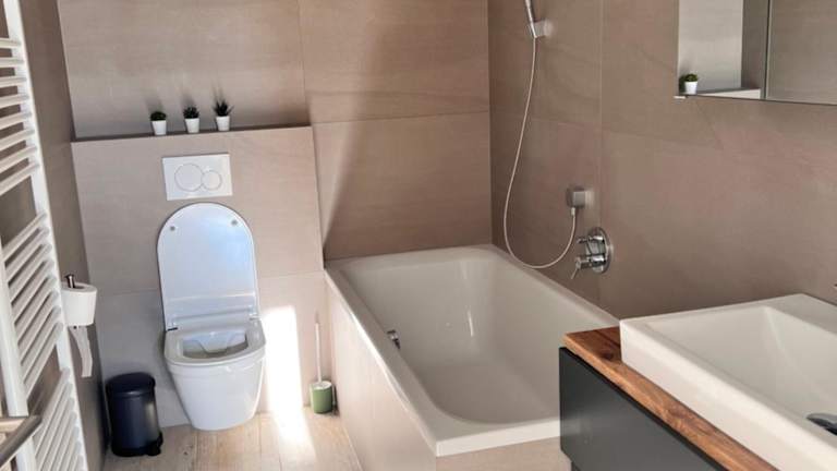 Die Ferienwohnung verfügt über 3 Schlafzimmer und 2 Badezimmer. Zur Ausstattung gehören Bettwäsche, Handtücher, ein Flachbild-TV mit Satellitenkanälen sowie ein Essbereich. Die voll ausgestattete Küche ermöglicht eine bequeme Selbstverpflegung.