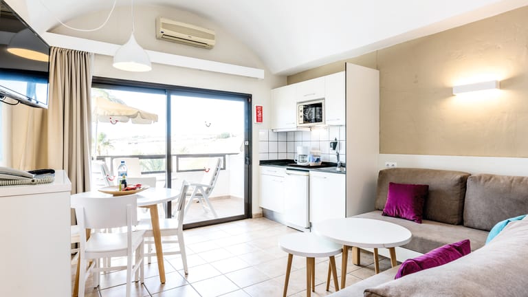 Die Appartements und Studios verfügen über eine voll ausgestattete Küche, Sitzecke, Balkon oder Terrasse und sind mit Klimaanlage, Flachbild-TV und WLAN ausgestattet. Die letzten Renovierungen in den Zimmern fanden 2016 statt.