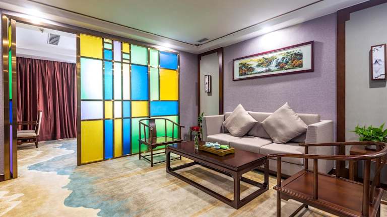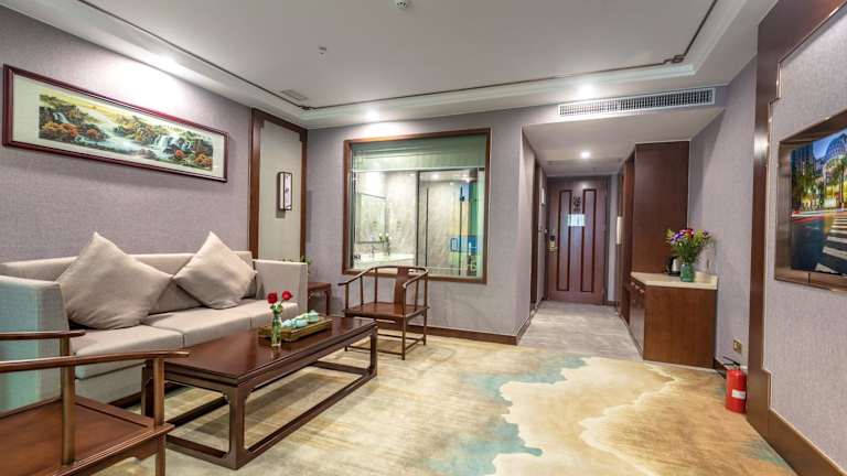 Das Hotel liegt im Tianhe-Viertel mitten im Herzen des Finanz- und Geschäftsviertels von Guangzhou. Nach rund 2 Fahrminuten erreichen die Gäste das Messezentrum Pazhou. In unmittelbarer Nähe befinden sich die Handels-, Finanz- und Verkehrszentren des Tianhe-Viertels wie die CITIC Plaza, das Tianhe Sports Centre, das Einkaufszentrum Teemall, die Grand View Plaza und der Ostbahnhof Guangzhou. Die Fahrt zum internationalen Flughafen Baiyun dauert nur rund 25 Minuten.