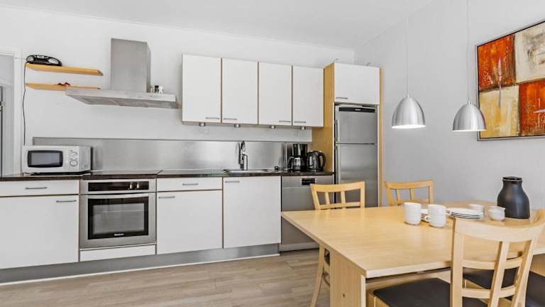 Die Ferienwohnung umfasst zwei Schlafzimmer, ein Wohnzimmer mit Kabel-TV, eine voll ausgestattete Küche mit Kühlschrank und Geschirrspüler sowie ein Badezimmer mit Dusche.