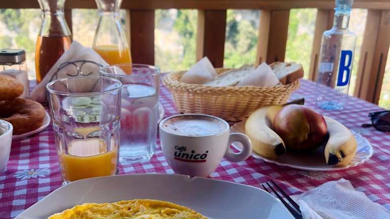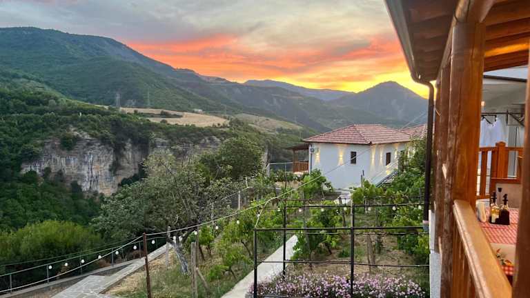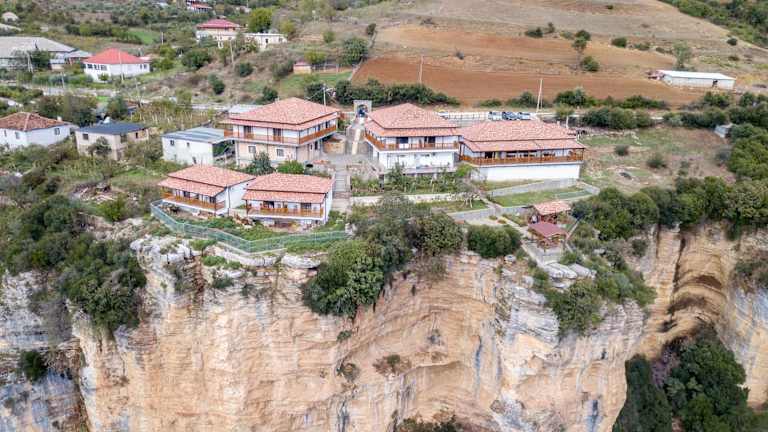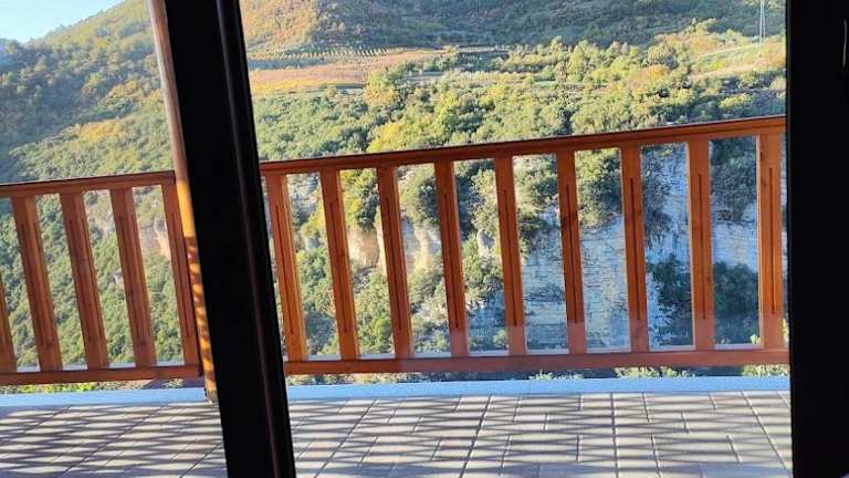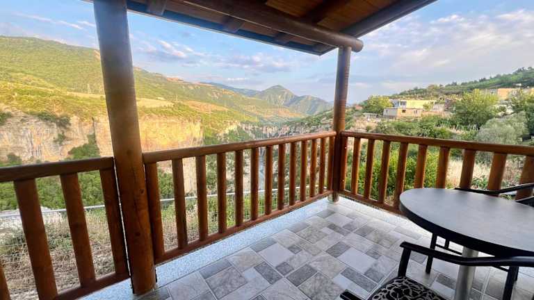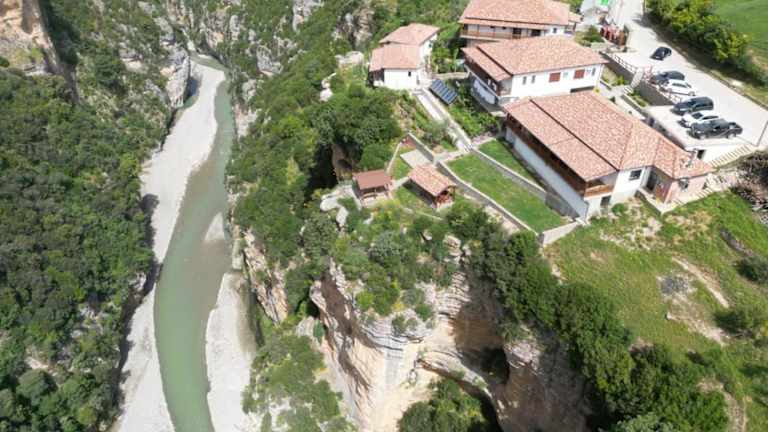 Das Hotel liegt in den Bergen an dem Osum Canyon und besteht aus mehreren Gebäuden. Das zentrale Hauptgebäude mit Restaurant und Terrasse sowie den Gebäuden mit den Gästezimmern. Die Zimmer haben Balkons mit atemberaubenden Blick in den Canyon.