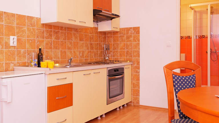 Die Zimmer im Guest House Kod Peskarije sind mit einem Schreibtisch, einem Flachbild-TV und einem eigenen Badezimmer ausgestattet. Zusätzlich bieten viele Zimmer eine Küche mit Kühlschrank, Ofen und Herdplatte. Jedes Zimmer verfügt auch über einen Kleiderschrank sowie Bettwäsche und Handtücher.