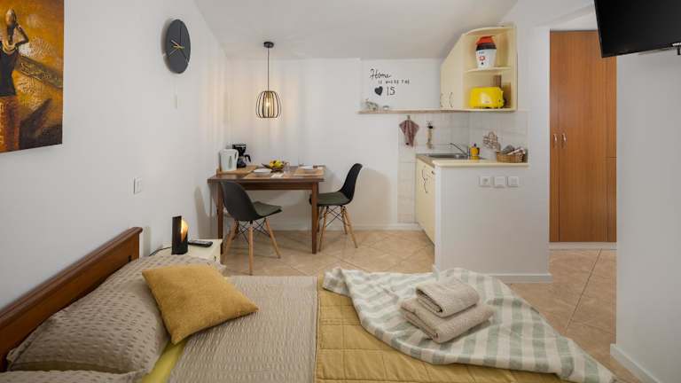 Die Zimmer in der Unterkunft Guest House Ravnić sind komfortabel ausgestattet und verfügen über Klimaanlage, einen Sitzbereich und einen Flachbild-TV mit Satellitenkanälen. Jede Unterkunft ist mit einer Küche, einem Essbereich sowie einem eigenen Badezimmer mit einem Haartrockner und einer Dusche ausgestattet. Bettwäsche und Handtücher werden bereitgestellt, und die Zimmer bieten einen Blick auf den Garten.