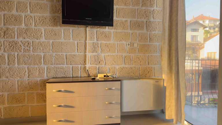Die Zimmer in der Unterkunft Guest House Rubin sind mit einem Balkon ausgestattet und verfügen über ein eigenes Badezimmer mit einer Dusche sowie Bademänteln. Zudem bieten die Zimmer einen Flachbild-TV und Klimaanlage. Einige Zimmer sind zusätzlich mit einer Terrasse ausgestattet. Alle Zimmer beinhalten einen Sitzbereich.