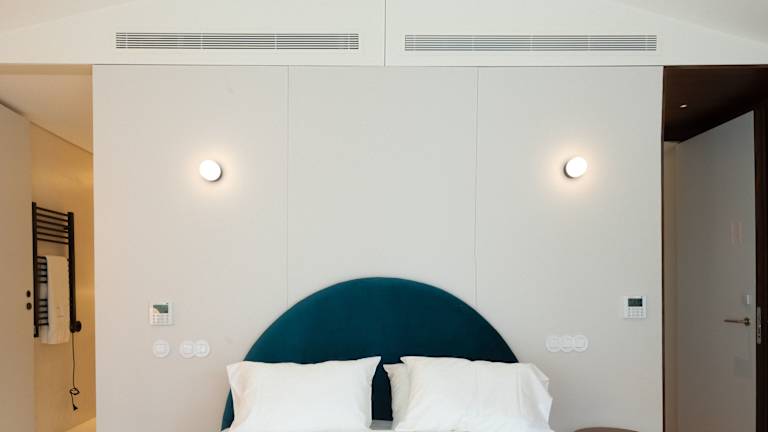 Die Zimmer sind mit Teppichböden ausgestattet und bieten ein Doppelbett sowie ein Sofabett. Zustellbetten können angefordert werden. Sie verfügen über eine individuell steuerbare Klimaanlage, Heizung, einen Safe, einen Schreibtisch, eine Tee-/Kaffeemaschine, ein Bügelset und einen Flachbildschirmfernseher. Im Badezimmer finden Gäste eine Dusche, einen Haartrockner sowie Kosmetikartikel und eine Auswahl an Handtüchern. Alle Zimmer sind Nichtraucherzimmer.