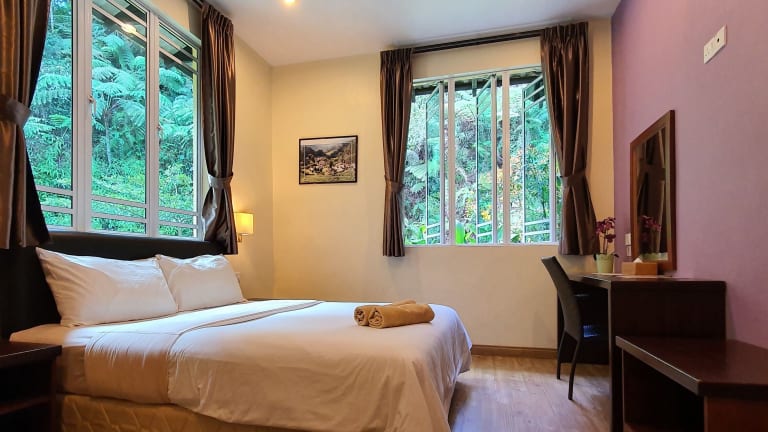 Das Hotel Arundina Cameron Highlands verfügt über insgesamt 7 klimatisierte Zimmer, die Ihnen einen angenehmen Aufenthalt garantieren. Jedes Zimmer ist mit einem eigenen Badezimmer ausgestattet, das über eine Dusche, ein Bidet und Hausschuhe verfügt. Kostenloses WLAN ist in allen Zimmern verfügbar und die Zimmer werden täglich gereinigt. Auf Anfrage können Sie auch Bügeleisen und Bügelbretter erhalten.