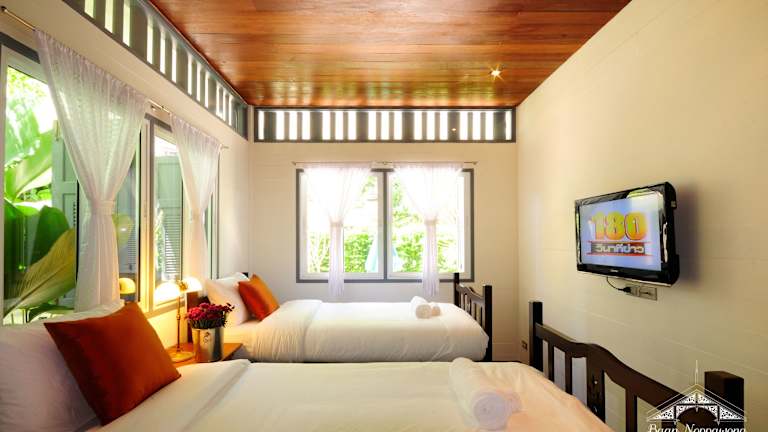 Das Guesthouse Baan Noppawong wurde in einem der seltenen Kolonialhäuser von Bangkok restauriert und vereint thailändische Feng Shui-Prinzipien mit einer heimeligen Atmosphäre. Die Unterkunft verfügt über 7 Zimmer, die viel Tageslicht sowie frische Blumen bieten. Die Einrichtung umfasst Teakholzböden, Holzdecken, thailändische Antiquitäten und natürliche Stoffe. Ein schattiger Garten lädt zum Entspannen ein. Das Hotel bietet eine 24-Stunden-Rezeption, Concierge-Service und Shuttleservice.