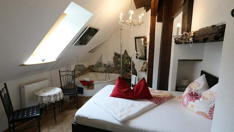 Jedes Zimmer im Baderhaus ist individuell zu einem Thema gestaltet und bietet zahlreiche Annehmlichkeiten wie einen Flachbild-Kabel-TV, eine Sitzecke sowie ein Bad mit Badewanne oder Dusche und WC. Einige Zimmer überzeugen durch einen Blick auf den Fluss Mur. Es besteht keine spezifische Nennung von Zimmerkategorien oder Grössen.