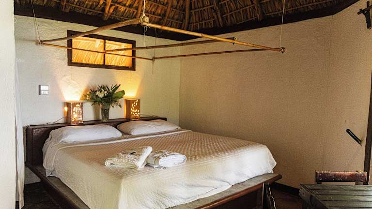 Die Bungalows sind tropisch eingerichtet und verfügen über einen Ventilator sowie ein Moskitonetz. Einige Bungalows sind direkt am Strand gelegen und alle bieten einen schönen Meerblick.