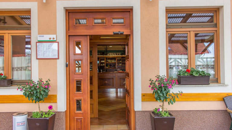 Das Restaurant serviert traditionelle slowenische und gegrillte Gerichte. Bei schönem Wetter sind die Mahlzeiten auf der Terrasse besonders angenehm. Auf Anfrage sind Lunchpakete erhältlich. Für den kleinen Hunger bietet die Snackbar verschiedene Snacks an.