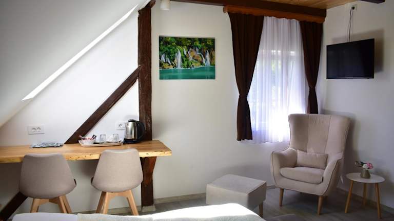 Das House Boro befindet sich in Jezerce, einem malerischen Dorf inmitten einer grünen Umgebung. Es liegt nur 1,5 km vom Nationalpark Plitvicer Seen entfernt, einem der schönsten Naturwunder Kroatiens. Die Lage ermöglicht es Ihnen, die unberührte Natur und die atemberaubende Schönheit des Nationalparks zu genießen. Eine Bushaltestelle befindet sich in unmittelbarer Nähe der Pension und ermöglicht Ihnen eine bequeme Anbindung an die umliegenden Orte. In der Nähe finden Sie auch Geschäfte, Restaurants und ein Sportzentrum, die alle innerhalb von 500 m erreichbar sind.