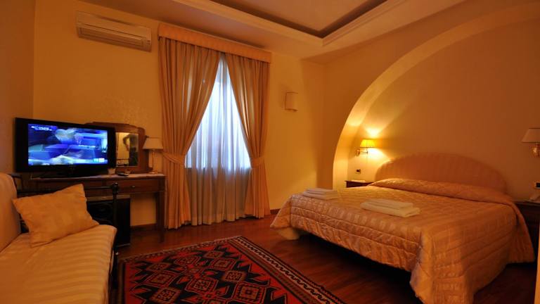 Die Zimmer sind mit einer Klimaanlage und Heizung ausgestattet. Viele Zimmer verfügen über einen Balkon. Die Ausstattung umfasst ein Doppelbett, einen Safe, eine Minibar, einen Kühlschrank, ein Telefon, ein TV-Gerät und kostenloses Wifi. Die Badezimmer sind mit einer Dusche, Badewanne und Bidet sowie einem Haartrockner ausgestattet. Familien- und Nichtraucherzimmer sind ebenfalls verfügbar.