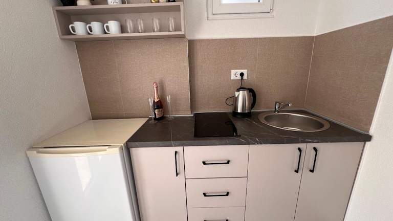 Die Zimmer sind mit einem Wasserkocher ausgestattet und einige verfügen über eine Küche mit Kühlschrank, Ofen und Minibar, ideal für Selbstversorger. Eine Gemeinschaftsküche steht den Gästen ebenfalls zur Verfügung.