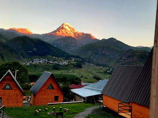 Das Guesthouse Elli & Cottages in Stepantsminda ist eine ideale Unterkunft für Reisende, die die Schönheit der umliegenden Berge und die malerische Umgebung genießen möchten. Mit Annehmlichkeiten wie einem Garten, einer Gemeinschaftslounge und einer Terrasse bietet das Guesthouse den Gästen eine entspannte Atmosphäre. Das kostenfreie WLAN, der Whirlpool und der Fahrradverleih sorgen für zusätzlichen Komfort. Die Zimmer sind gemütlich eingerichtet und bieten eine Terrasse mit herrlichem Bergblick. Einige Zimmer verfügen sogar über eine Küche. Das kontinentale oder vegetarische Frühstück und der Grillbereich bieten kulinarische Genüsse. Das Guesthouse Elli & Cottages liegt in der Nähe von Skigebieten und bietet Ihnen die Möglichkeit, die Gegend zu erkunden und Ausflüge zu unternehmen. Das freundliche Personal steht Ihnen rund um die Uhr zur Verfügung und spricht Englisch und Russisch.