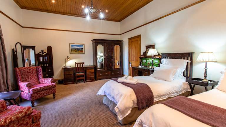 Die Zimmer im Evergreen Manor sind im luxuriösen Stil eingerichtet und verfügen über moderne Annehmlichkeiten wie Klimaanlage, WLAN, Minibar (gegen Gebühr) und Flatscreen-TV. Jedes Zimmer bietet einen Blick auf den Garten und hat eine individuelle Gestaltung mit einzigartigen Antiquitäten. Die letzten Teilrenovierungen haben 2018 stattgefunden.
