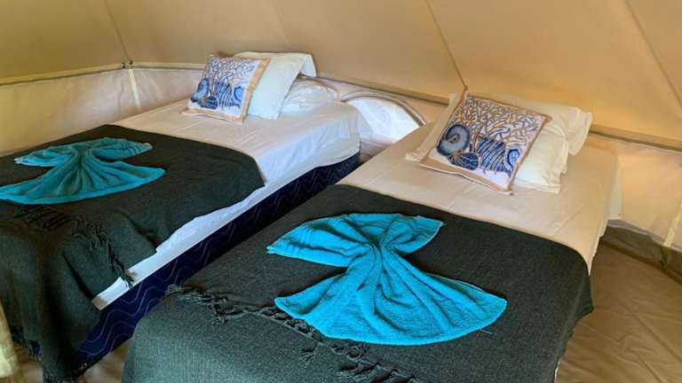 In der Zelt-Lodge sind Handtücher und Bettwäsche bereitgestellt. Die Unterkunft bietet zudem kostenfreies WLAN sowie einen herrlichen Meerblick.