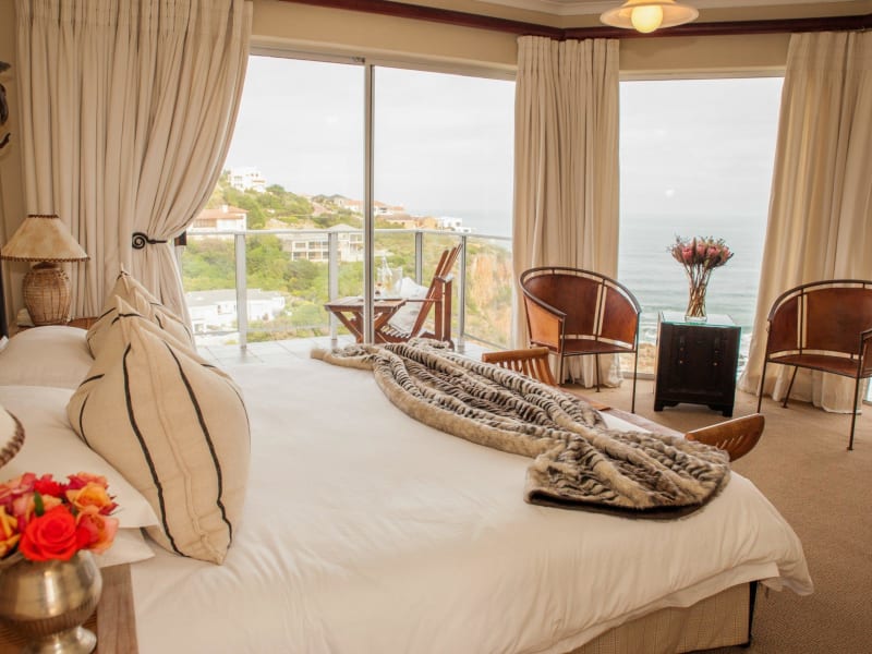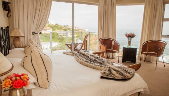 Die Headlands House Guest Lodge in Knysna ist ein traumhaftes Hotel auf einer Klippe mit einem atemberaubenden Panoramablick auf die Lagune von Knysna und den Indischen Ozean. Hier erwartet Sie nicht nur ein Außenpool, sondern auch geräumige Zimmer mit einem möblierten Balkon. Das kostenlose WLAN ermöglicht Ihnen eine problemlose Kommunikation und die hellen und elegant eingerichteten Zimmer sorgen für eine angenehme Atmosphäre. Genießen Sie morgens ein köstliches englisches Frühstück auf der Sonnenterrasse und lassen Sie den Tag auf der Aussichtsterrasse bei einem Glas Champagner ausklingen. Das hilfsbereite Personal steht Ihnen gerne zur Verfügung und gibt Ihnen Tipps zu nahegelegenen Restaurants. Die Lodge ist außerdem ein idealer Ausgangspunkt, um die Garden Route zu erkunden und bietet Ihnen zahlreiche Freizeitaktivitäten in der Umgebung. Parkplätze stehen Ihnen kostenfrei zur Verfügung.