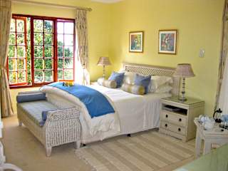 4 Star Luxury Country House, Ideal for golfing stays, in the heart of the Garden Route. Surrounded by spectacular mountain scenery, and tranquil setting. South Africas' No. 1 Golf course, the links at Fancourt, plus its two other courses, are just 1.5 kms, with 3 other 18 hole courses nearby. Close to long sandy beaches and sheltered coves, George Airport and shopping centre. A solar heated swimming pool in a large mature garden, visiting birds is the perfect place to relax.