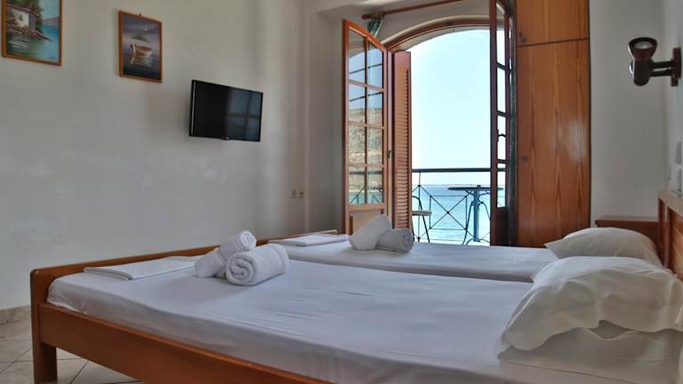 Die Zimmer im Guesthouse Palataki sind mit einer Klimaanlage, einem Kleiderschrank, einem eigenen Badezimmer, einem TV, Bettwäsche sowie einem Balkon mit Meerblick ausgestattet. Zusätzlich stehen den Gästen Kühlschränke in den Wohneinheiten zur Verfügung.
