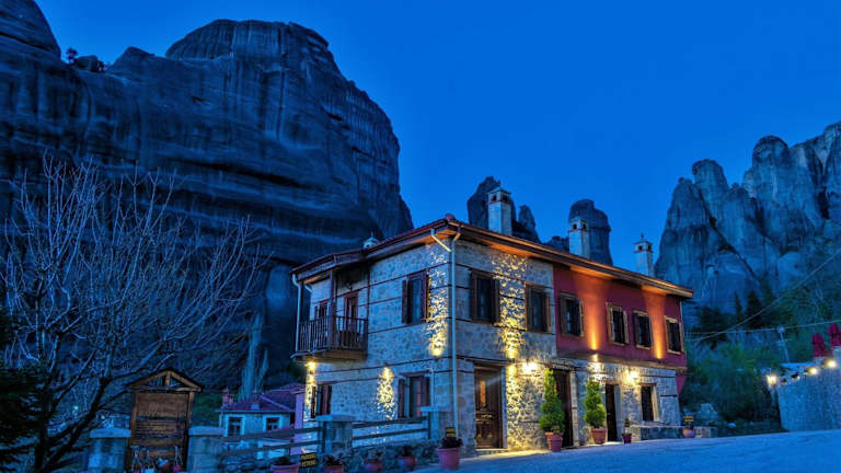 Die modernen Zimmer bieten atemberaubende Ausblicke auf Meteora und sind mit einem Kühlschrank, Sat-TV und Klimaanlage ausgestattet. Einige Zimmer verfügen über einen Kamin, während eines der Zimmer eine Whirlpool-Badewanne bietet. Zudem gibt es ein barrierefreies Zimmer. Alle Zimmer sind schallisoliert und gewährleisten eine angenehme Bequemlichkeit.