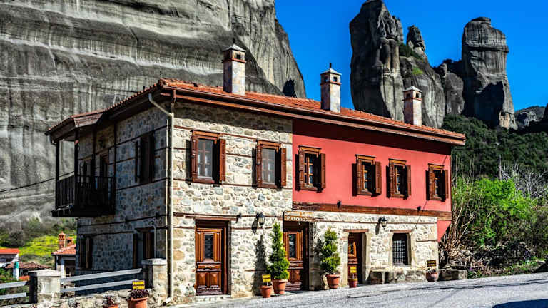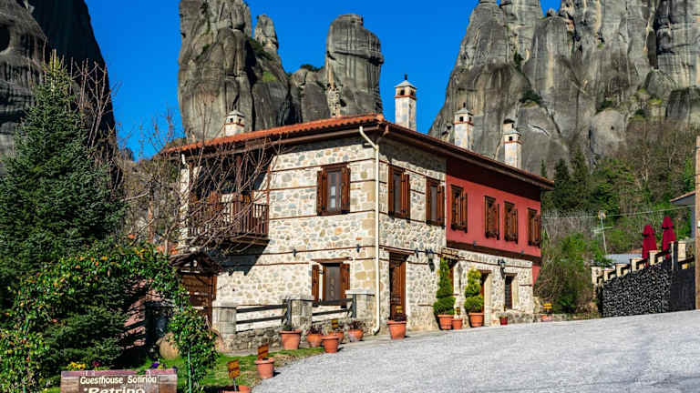 Das Gästehaus Petrino Sotiriou befindet sich in Kastraki, in einer idyllischen Umgebung mit Blick auf die beeindruckenden Felsen von Meteora. Die Lage bietet ein authentisches Erlebnis in der Nähe der Natur und der lokalen Kultur.