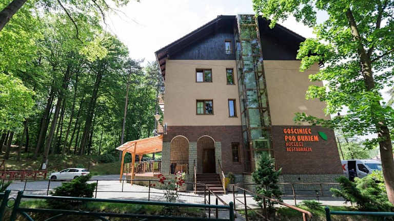 Die Unterkunft Gościniec pod Bukiem überzeugt mit heimeligen Übernachtungsmöglichkeiten, die mit Parkettböden, einer Terrasse sowie einem einladenden Restaurant und einer Bar ausgestattet sind. WLAN steht den Gästen kostenlos zur Verfügung, ebenso wie eine Parkiermöglichkeit.