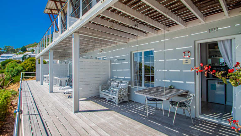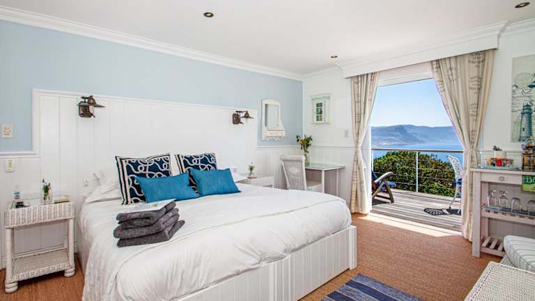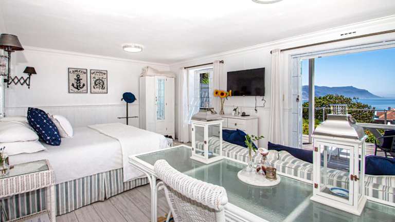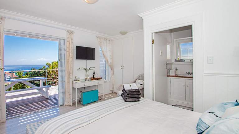Das Guesthouse bietet elegante Zimmer, die im maritimen Stil in sanften Blau- und Weisstönen gestaltet sind. Jedes Zimmer verfügt über einen eigenen Eingang und eine eigene Terrasse, auf der Gäste die atemberaubende Aussicht aufs Meer geniessen können. Zur Ausstattung gehören ein Kühlschrank sowie eine Teeküche mit Mikrowelle und Wasserkocher. Ein Indoor, solarbeheizter Pool steht ebenfalls zur Verfügung.