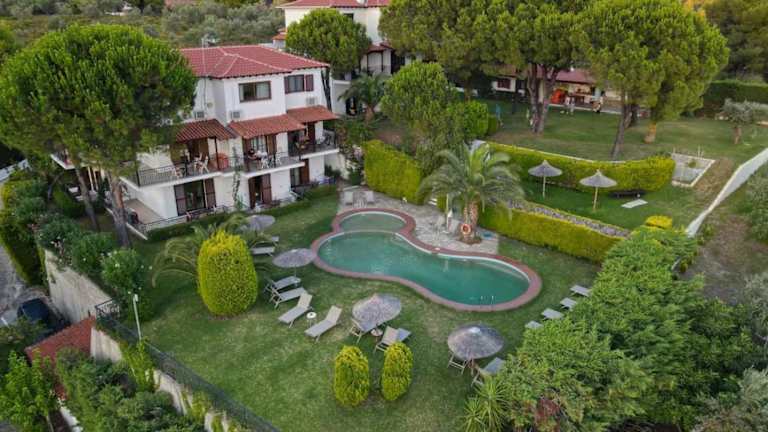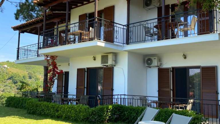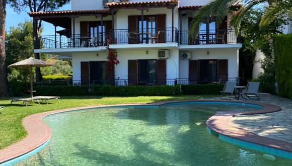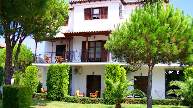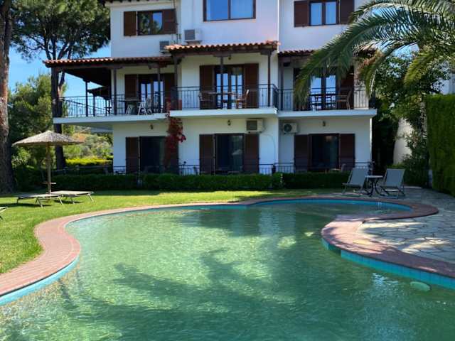 Die Unterkunft befindet sich in Agia Paraskevi, nur etwa 500 m vom Strand entfernt. Der Flughafen ist rund 9 km und der Bahnhof ca. 300 m entfernt. Das Stadtzentrum ist in etwa 8 km erreichbar. Die Lage ermöglicht eine einfache Anbindung an Sehenswürdigkeiten der Umgebung.