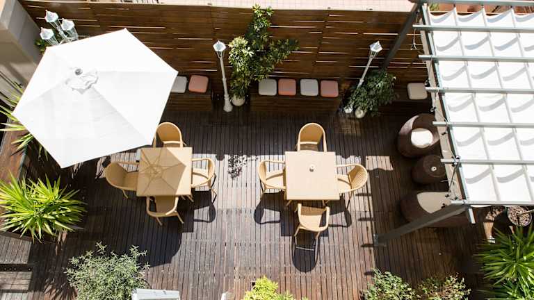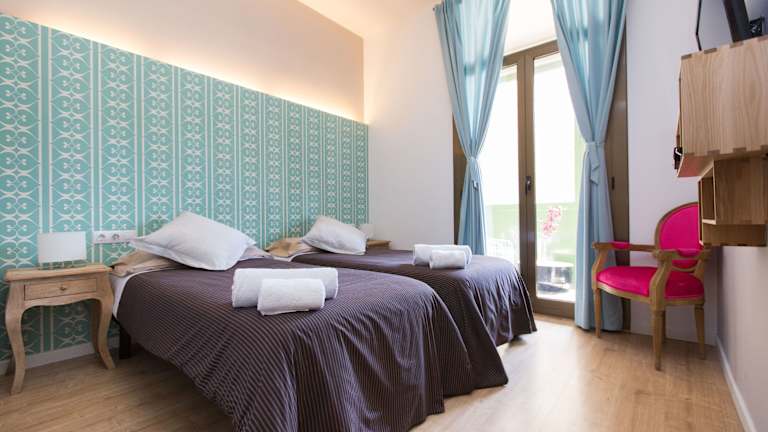 Das Violeta Boutique Hotel verfügt über eine Terrasse, auf der die Gäste entspannen und die Atmosphäre der Stadt genießen können. In der Umgebung finden Sie verschiedene Bars, Restaurants und Geschäfte, in denen Sie lokale Köstlichkeiten und internationale Speisen probieren können. Von Tapas bis hin zu Gourmetgerichten ist für jeden Geschmack etwas dabei. Die berühmte Promenade Las Ramblas ist nur wenige Gehminuten entfernt und bietet eine große Auswahl an Restaurants und Cafés.