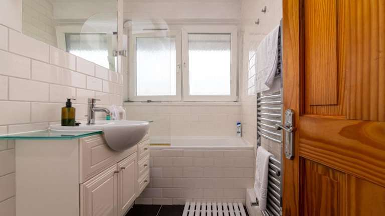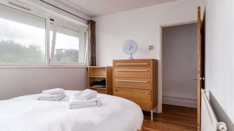 Die Ferienwohnung besteht aus zwei Schlafzimmern, einem Wohnzimmer und einer voll ausgestatteten Küche mit Kühlschrank und Kaffeemaschine. Das Badezimmer ist mit einer Dusche und einem Haartrockner ausgestattet. Handtücher und Bettwäsche werden bereitgestellt.