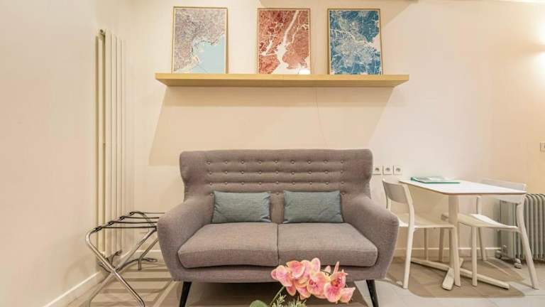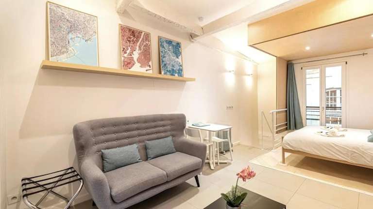 GuestReady - Modern Studio 1min Charonne Metro ist eine moderne Ferienwohnung, die mit einem TV ausgestattet ist und eine einladende Atmosphäre bietet.