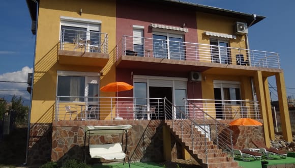 Gasthaus Struma Dolinata ist eine gemütliche, moderne 3-Sterne-Unterkunft im ruhigen Dorf Strumyani, 15 km vom Kurort Sandanski (südwestliches Bulgarien) entfernt. Die Nachbarländer Griechenland (30 km) und Mazedonien (FYROM, 50 km) sind ebenfalls ganz in der Nähe, so dass Sie die Möglichkeit haben, 3 Länder zum Preis von 1 zu besuchen! Gäste können einem Doppelzimmer mit einem Queensize-Bett oder einem Zweibettzimmer wählen. Jedes Zimmer verfügt über kostenfreies WLAN, Klimaanlage, einen Kühlschrank mit Minibar, einen Flachbild-TV mit mehr als 200 Kanälen und ein eigenes Badezimmer mit einem WC, einer Dusche und einem Haartrockner. Die Zimmer haben auch Rolläden und einen Balkon (mit einem Tisch und 2 Stühlen), die einen herrliche Aussicht auf das Dorf, das Tal der Struma und Maleshevsko Berg bietet. Es ist schön, draußen im großen Garten zu sitzen, wo man sich auf unterschiedliche Weise entspannen kann: Badminton auf dem Sportplatz spielen, im gemütlichen Pavillon sitzen und den herrlichen Blick auf das Tal und die Berge genießen, während man einen lokalen Wein probiert oder entspannen und sich auf eine Sonnenliege bräunen lassen, während Sie ein Buch lesen oder Ihre Lieblingsmusik hören. Es gibt einen kostenlosen privaten Parkplatz vor dem Haus. Da die Bushaltestelle auf der E79 und der Bahnhof 1 km von der Unterkunft entfernt sind, können Sie einfach mit den öffentlichen Verkehrsmitteln von Sofia kommen. Es gibt einen kleinen Laden auf 300m und 2 Restaurants auf 800m Entfernung von das Gasthaus. Das Dorf hat ein kleines ethnographisches Museum, ein kleines Kunstzentrum, ein Weingut und ein Freibad. Die belgischen Gastgeber sprechen Niederländisch, Englisch, Französisch, Bulgarisch und ein wenig Deutsch. Wir helfen Ihnen gerne bei Fragen zu Ihrem Aufenthalt und lokalen Sehenswürdigkeiten.