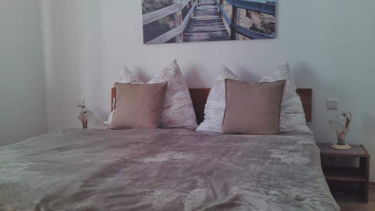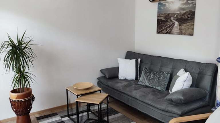 Die Ferienwohnung umfasst 2 Schlafzimmer, ein Badezimmer mit Dusche und Badewanne, ein Wohnzimmer mit Sitz- und Essbereich sowie eine moderne Küche, ausgestattet mit Kühlschrank, Geschirrspüler und Ofen. Es werden Handtücher und Bettwäsche bereitgestellt.